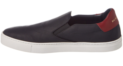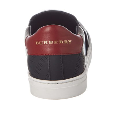 Color/material: black perforated check leather; deep claret leather trim