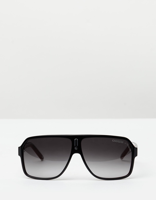 Hit the open road in style with the Carrera 27 sunglasses. Featuring a bold silhouette with striped arms, the sunnies offer good UV protection and sunglare reduction.