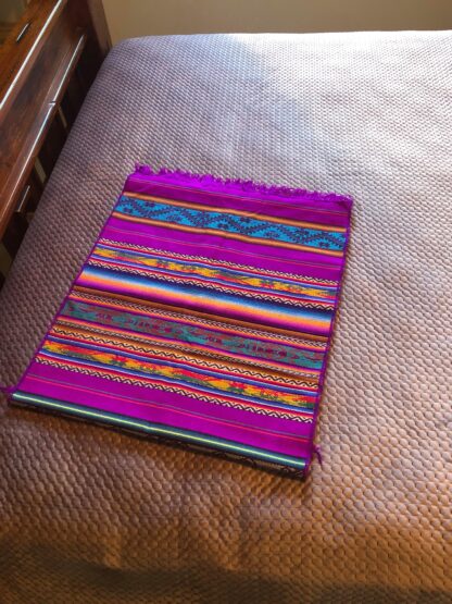 Our soft touch blankets are hand-woven on looms of Otavalo city, in the Andes of Ecuador, with a blend of 80% alpaca wool and 20% high quality polycotton. This blend will allow the blanket to dry quickly in cold weather conditions.