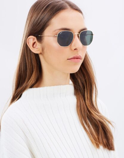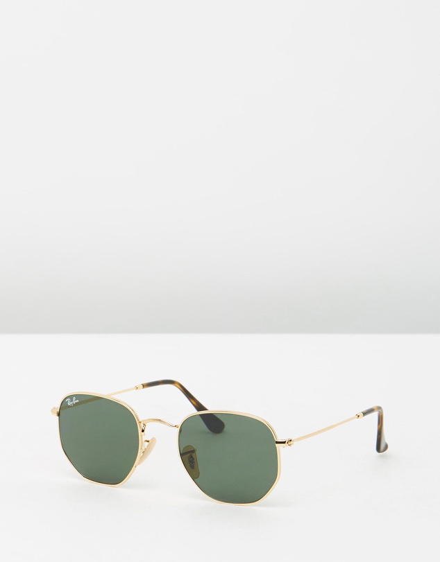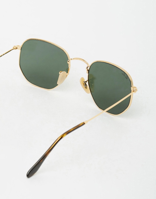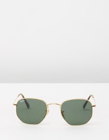 Update your look with the Hexagonal Flat RB3548N sunglasses from Ray-Ban. Crafted from fine gold metal framing and green tinted lenses.